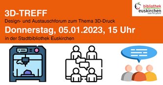 Die Stadtbibliothek Euskirchen lädt am 5.Januar 2022 um 15 Uhr erstmalig zum monatlichen 3D-Treff ein. Es sind alle…