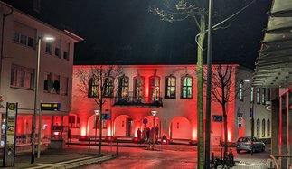 Das Alte Rathaus in Euskirchen erstrahlte am Orange Day passende in orangem Licht, um ein gut sichtbares Zeichen zu setzen…