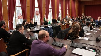 47 Schülerinnen und Schüler aus Charleville-Mézières besuchten am Montagmorgen das Euskirchener Rathaus. Bürgermeister Sacha…